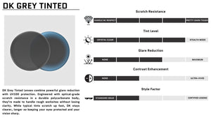 DK Grey Tinted Lenses combine powerful glare reduction with UV100 protection. Engineered with optical-grade scratch resistance in a durable polycarbonate body, they're made to handle rough worksites without losing clarity. While typical tints scratch up fast, DK stays clearer, longer so keeping your eyes protected and your vision sharp.