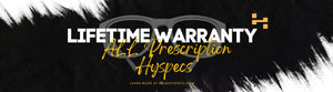If your prescription Hyspecs gets damaged whether from normal use or an accident we’ll replace them. Our lifetime warranty includes a one-time replacement of the entire set (frame, lens, and side-shields, if applicable).