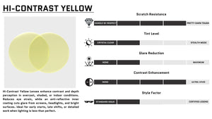 Hi-Contrast Yellow Lenses enhance contrast and depth perception in overcast, shaded, or indoor conditions. Reduces eye strain, while an anti-reflective inner coating cuts glare from screens, headlights, and bright surfaces. Ideal for early starts, late shifts, or detailed work when lighting is less than perfect.